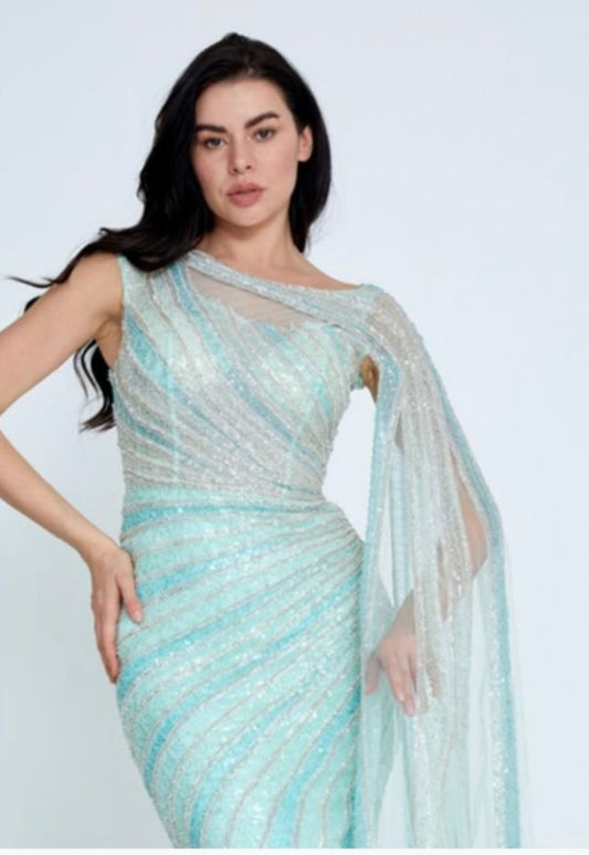 Εξαντλήθηκε021 Turquoise maxi mermaid dress