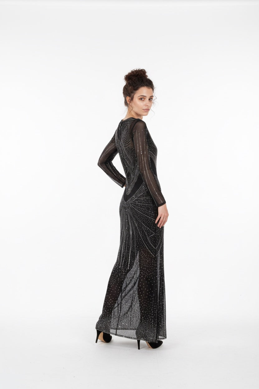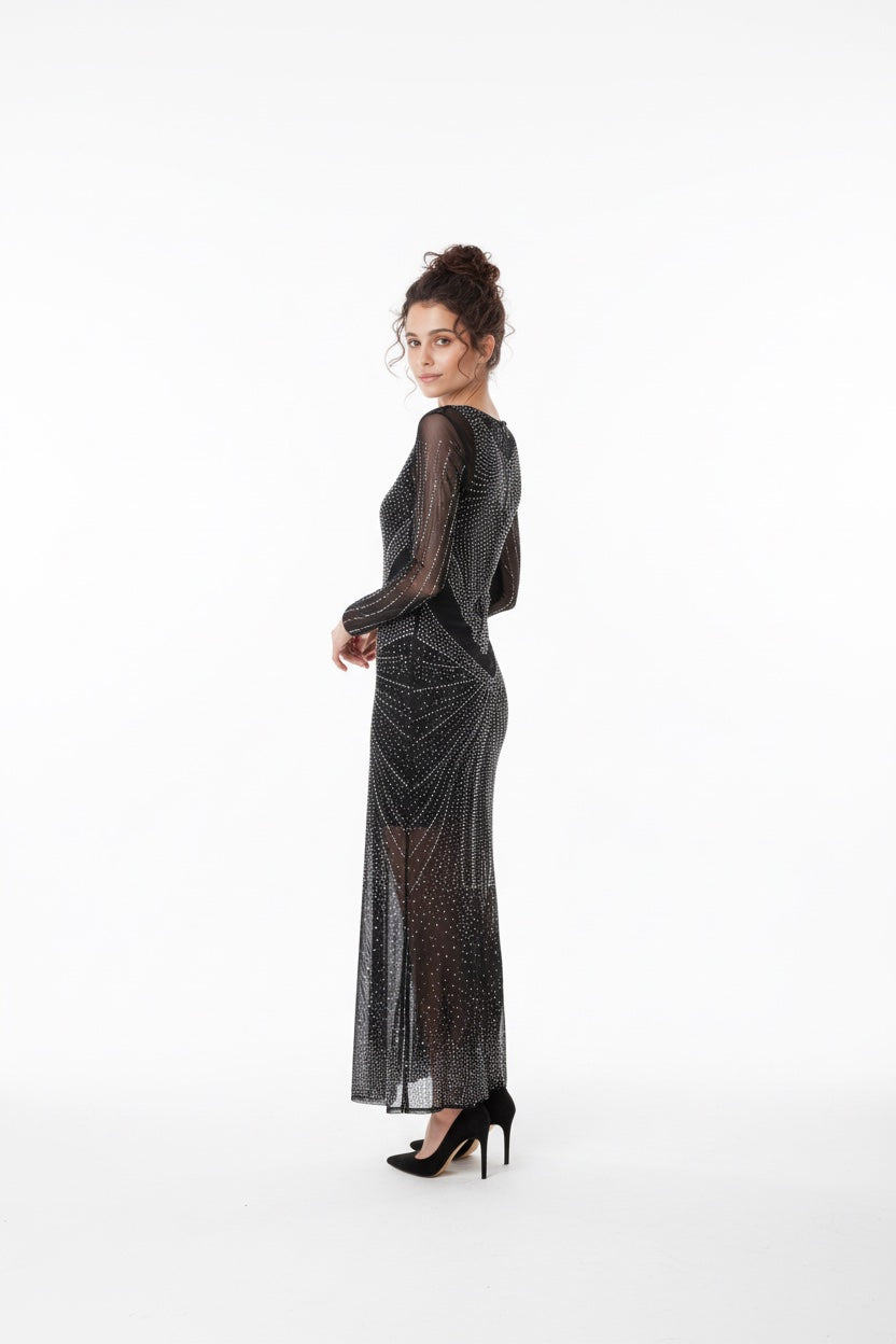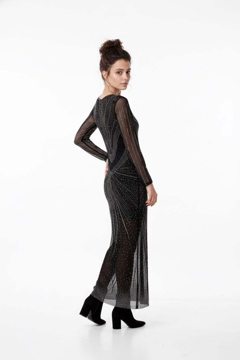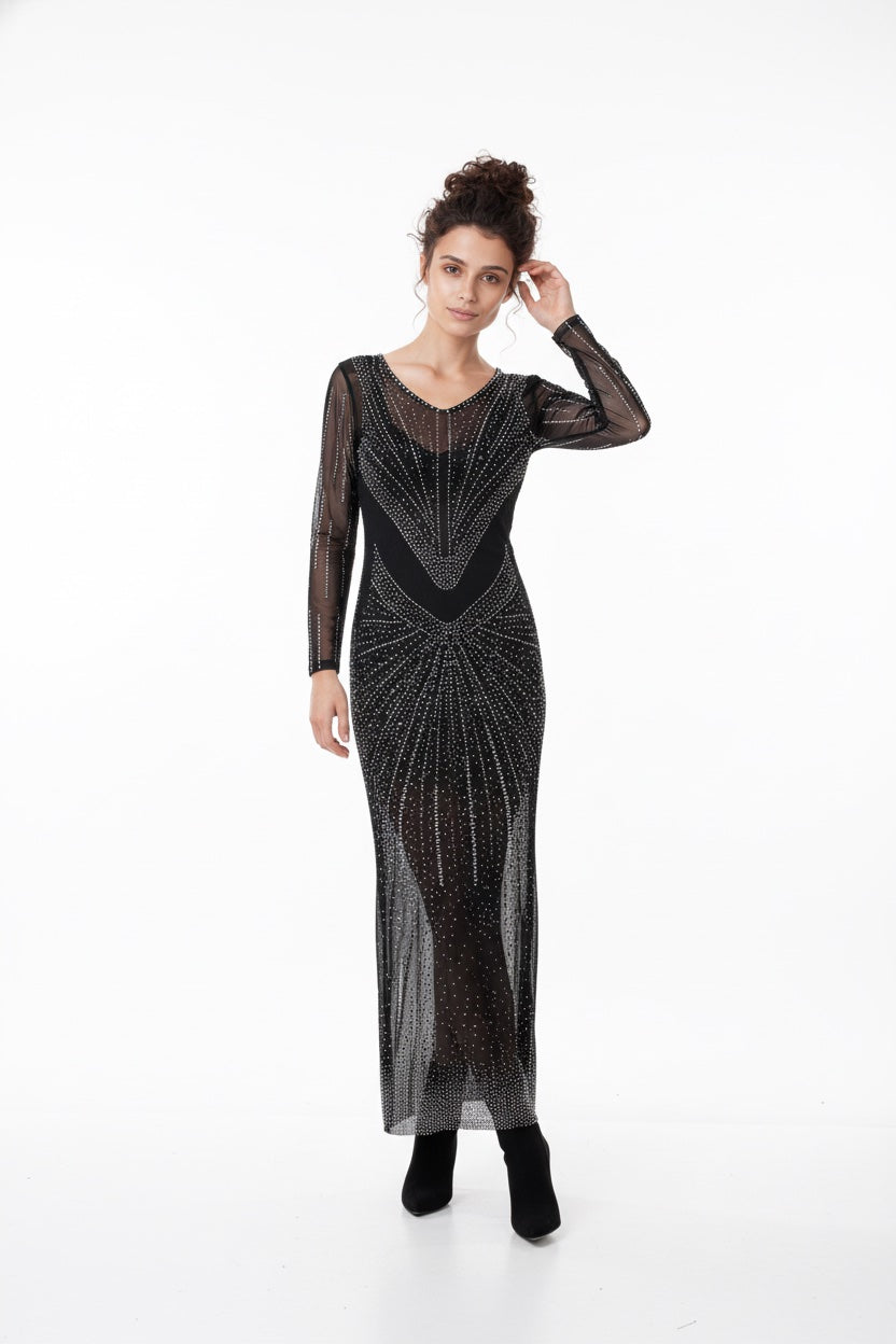 109 Μαύρο ελαστικό φόρεμα με στρας